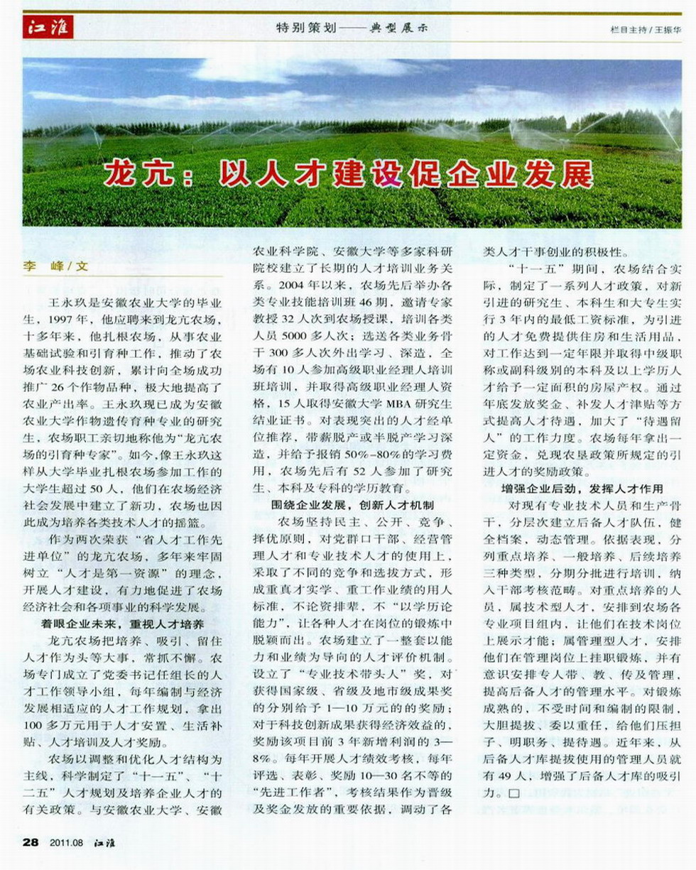 《江淮》杂志:龙亢农场以人才建设促企业发展