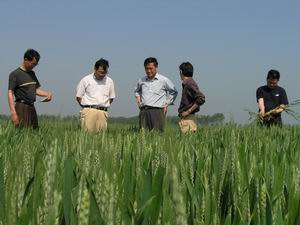 4月28日,省农垦集团公司副总经理李卓民在集团公 司发展处姚礼发处长的陪同下在潘村湖农场就农业 综合开发项目建设情况进行调研。李总一行在农场 领导和有关业务部门同志的陪同下,先后到正在紧 张施工的优质专用小麦繁育基地建设工地、部分农 业分场、农科站实验苗圃、四分场新站工地、种子 公司等地调查了解项目建设进度和田间小麦良种长 势。+李总在听取了农场领导的情况介绍后指出:一 定要把握好当前难得的发展机遇期,在开展好先进 性教育活动的同时,集中精力抓好项目建设和小麦 后期田间管理工作。李总强调:项目建设务必要严 把质量关,要在预定时间内高质量地完成项目建 设,充分发挥项目建设的最大效益,从而实现种子 产业的跨越式发展。看着一望无际绿油油的麦田, 李总俯身仔细观察,并向基层农业技术人员询问田 管措施落实情况。李总高兴地说:近年来,潘村湖 农场农业生产工作,特别是小麦良种生产有了突飞 猛进地提高,较好地实现了“三增”目标,经济和 社会效益显著。李总叮嘱农场的同志要切实抓好眼 下小麦的田间管理工作,力争取得新的更大的成 绩。图为李卓民副总经理(左二)在田间查看小麦 生长情况。(杨登宏摄)