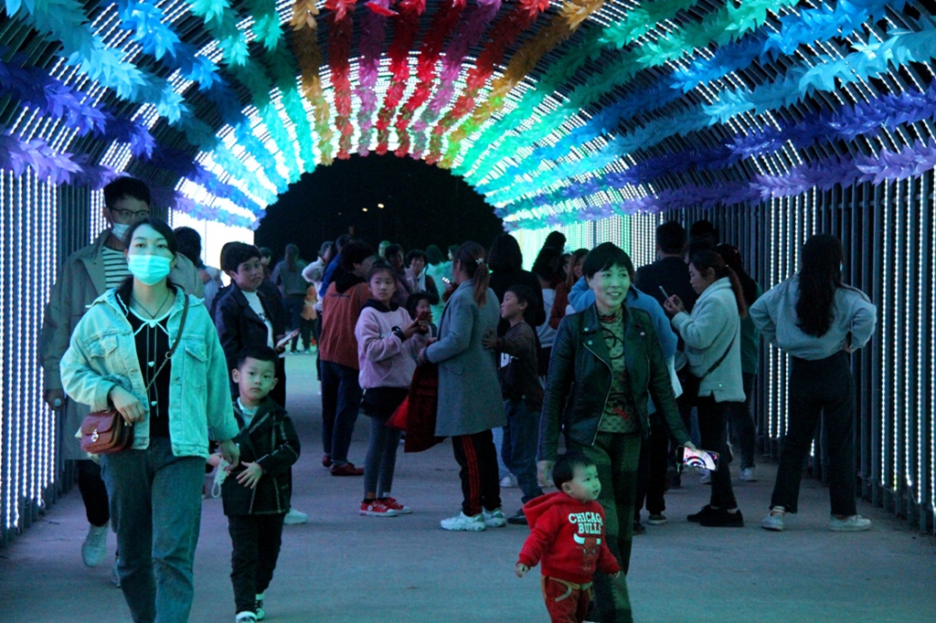 为满足广大城镇居民对美好生活的向往,龙亢农场结合建设农旅文明、打造农垦特色景区,对原龙亢农场农垦小镇3A级景区进行了升级改造,实施了种子的学问等研学区、荷塘柳韵景点灯光秀、地摊经济、缘定今生、儿童乐园、“吧比世界”体验区、“荷美大舞台”等一系列文旅项目。“双节”期间,这些项目全部向游客免费开放,吸引了方圆百余公里的游客前来游览观光。每天徜徉在景区的游客总是神游八极、各得其所、悠然自乐,既能享受到农垦农场的特色文明,又能观赏到都市灯光景观,还能增长农业科普知识。
